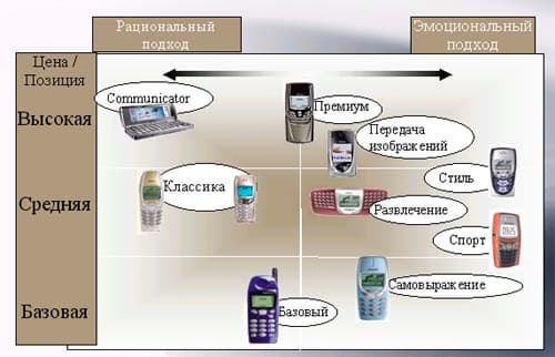 Вот так рекламируются телефоны различных категорий (думаю, описания достаточно красноречивы).