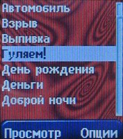 Главное меню M550 состоит всего из шести пунктов. Первым из них является меню Сообщения, открывающее доступ к SMS и голосовой почте. Возможности аппарата по этой части вполне тривиальны, стоит специально упомянуть лишь о том, что M550 поддерживает функцию SMS-чата (для которой и используются ники в телефонной книге).