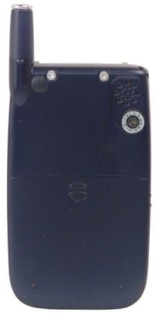 На передней внешней панели нет ничего кроме дисплея и расположенного над ним светодиодного индикатора, который светится при входящем звонке. На задней части расположен отсек батареи с отдельной крышкой, отверстие динамика мелодий и объектив фотокамеры. Зеркала для автопортретной съёмки нет, если не считать таковым зеркально окрашенный торец антенны.