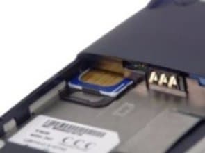 Сим-карта крепится на специальной тонкой металлической планке (осторожнее при работе с ней, она легко гнётся и может сломаться) и задвигается в верхнюю часть задней части основного блока. Ушко на планке позволяет без проблем вытащить карту обратно. Правда, эта металлическая планка очень легко гнётся. Батарея крепится на своём месте поверх ушка планки, за которое она вынимается из разъёма.
