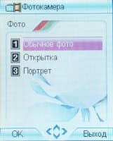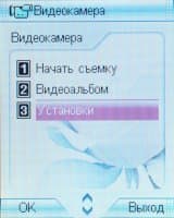 Видеокамера. Позволяет записывать видеофрагменты. Из установок доступны: качество, яркость и скорость записи. Размер полученного фильма позволяет использовать его только в качестве заставки на включение и выключение аппарата. Отослать его по ммс нельзя. К шпионской деятельности резизация этой функции в аппарате неприменима.