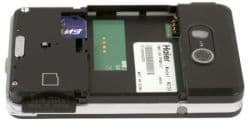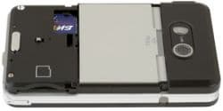 Под крышкой батареи кроме её самой прячется слот для сим-карты и разъём для сменных карт памяти стандарта miniSD, причём карты можно менять без отключения питания. Но на сменной карте должны быть предварительно созданы стандартные каталоги, иначе телефон не сможет увидеть хранящуюся там информацию.