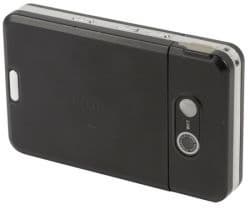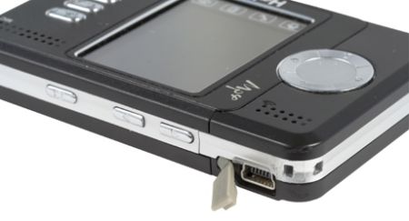 Корпус из черного матового пластика с рубленными гранями и отсутствием привычных цифро-алфавитных клавиш. На передней панели сразу обращаешь внимание на круглую серебристую кнопку управления музыкальными функциями, на два динамика, что позволяет играть музыку как на бум-боксе. Четыре управляющих клавиши ОК (плеер), С (вибро), игры и выключения лишь усиливают впечатление, что перед нами банальный MP3 плеер. Наже отверстие микрофона ничем не смущает — многие плееры имеют возможность записи окружающего звука.