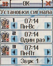 Будильников в аппарате три, каждый может работать в следующих режимах: однократное срабатывание, с понедельника по воскресенье, с понедельника по пятницу и с понедельника по субботу.