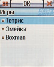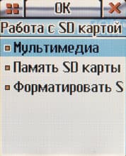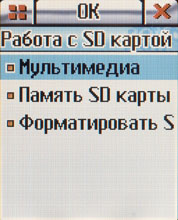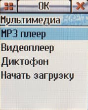 Третий экран меню отвечает за мультимедийные функции: плеер, фото-видео камера, игры и документы. Под документами имеются в виду картинки, мелодии и видеоклипы (формата 3gp), также в этом меню осуществляется работа с SD картой.