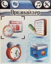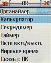 На втором экране собраны приложения позволяющие организовать время: органайзер, заметки, будильники и дополнительные приложения, такие как: калькулятор, секундомер, таймер, установки времени автоматического включения и выключения, мировое время и связь с ПК. Несмотря на то, что драйвер для подключения к ПК не требуется, аппарат нужно перевести в этот режим вручную.
