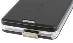 На верхнем торце находятся разъём для подключения кабеля ПК, обычный mini-USB, кнопки регулировки громкости и кнопка включения фотоаппарата. Эти кнопки имеют небольшой размер и поэтому регулировать громкость телефонного разговора не очень удобно.