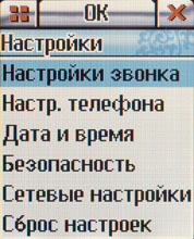 На первом находятся сообщения, список звонков, телефонная книга и интернет. Причём профили для доступа уже занесены в память аппарата.