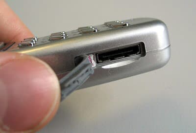 Заканчивая первое знакомство с аппаратом, добавим, что разъем для подключения зарядного устройства или гарнитуры находится на левом боку телефона. В верхнем торце трубки расположился специальный паз для крепления шнурка (чтобы носить устройство на шее или руке), а в нижнем — окошко лазерной указки. Да, вы не ослышались. Действительно, Haier P5 снабжен миниатюрным лазерным излучателем.