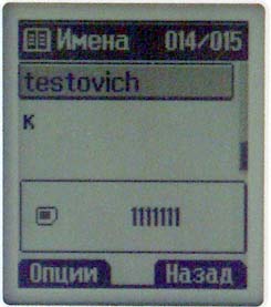 Телефонная книга. В записную книжку LG-510 вы сможете занести 200 имен, указав для каждого из них 4 номера телефона (рабочий, домашний, мобильный, факс) и адрес электронной почты. Ввод имен возможен как на английском, так и на русском языке, при этом максимальная длина имени составляет 20 символов (на SIM-карте меньше). Когда вы заносите новое имя, номер нужно выбирать по умолчанию — тогда он будет отображаться как основной, а остальные номера можно будет легко просмотреть, нажав горизонтальные навигационные клавиши. При последующем редактировании имени сменить номер по умолчанию нельзя — придется либо заново набирать первый номер, либо оставлять все как есть.