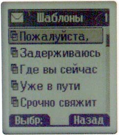Меню Сообщения. Этот пункт (первый в главном меню) открывает доступ к чтению и набору коротких сообщений, а также к настройке широковещательного приема. В телефоне установлена отдельная память на 100 коротких сообщений плюс память SIM-карты (как правило, на 10 сообщений). В вашем распоряжении 6 предустановленных шаблонов сообщений и возможность создать до 5 собственных. Все предустановленные шаблоны написаны на русском языке — поддержка русского организована весьма неплохо: помимо прочего, предусмотрен предикативный ввод текста eZi, аналогичный Т9 (английский и русский языки, каждый из словарей действует в зависимости от выбранного языка меню). Работает он, на мой взгляд, примерно так же, как и Т9 — к нему достаточно быстро привыкаешь. Прием и оправка сообщений на русском языке не вызывают затруднений.