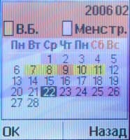 Женский календарь — программа, хорошо известная владелицам женских телефонов, она присутствовала в качестве «бесплатного бонуса» и в G1800.