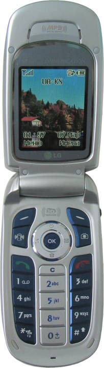 LG F1200 — раскладной телефон достаточно большого размера, по габаритам эта модель сопоставима, например, с Motorola MPx200, по сравнению с которым она чуть выше, но несколько уже и тоньше. Геометрическое решение не отличается особым изяществом, но оно и не плохое, в нем нет элементов, зрительно увеличивающих габариты, или ухудшающих эстетическое восприятие. Телефон как телефон, да, достаточно большой, но не громоздкий — вот так примерно можно описать наше впечатление от этого аппарата. Корпус изготовлен из качественного твердого пластика, собрат тщательно, с ровными тонкими пазами между деталями. Шарнир крышки не очень тугой, но плотный, без заметного люфта. На базовом блоке есть небольшая прокладка из резины, смягчающая «приземление» открываемой крышки, но она слишком тонка для эффективной амортизации. В конструкции нет скрипучих сочленений, производящих плохое впечатление.