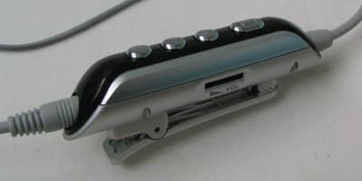 Отдельного описания заслуживает гарнитура телефона. Во-первых, она оснащена управляющим блоком, который содержит не только кнопку ответа, но и клавиши для управления MP3-плеером, а именно, кнопки Play/Pause, Forwardи Back, что, по идее, должно существенно облегчить управление проигрыванием, так как отпадает необходимость каждый раз доставать телефон. На деле так оно и есть.