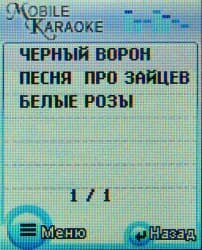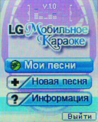 Функция караоке известна нам по LG F2300, в F1200 установлен тот же Java-апплет МобиКа. Он позволяет проигрывать файлы внутреннего формата, в телефоне есть три песни, еще около 100 можно загрузить с сайта Wow! LG. Функциональность проигрывателя базовая, нет ни анализа пения, ни выставления оценок — только воспроизведение аккомпанемента и синхронное отображение текста песни.