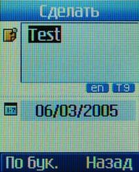 Телефон качественно русифицирован, все пункты меню грамотно переведены, поддерживается ввод кириллицы для сообщений и памяти телефона. Единственное замечание касается названия пункта меню со списком задач — Сделать, что отражает содержание этой функции, но неправильно с точки зрения грамматики.