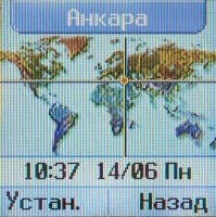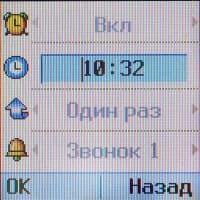 Пункт Настройки содержит несколько разношерстный набор опций. Здесь и управление настройками телефона (язык меню, опции экрана, дата и время), и функции сети (в том числе и переадресацией), и будильник. Последний позволяет программировать три сигнала, каждый из которых может активироваться либо ежедневно, либо однократно, каждый день с понедельника по пятницу или с понедельника по субботу.. В общем, будильник в G1600 весьма функциональный, но не мешало бы перенести его, скажем, в меню органайзера, где найти его было бы намного легче. Вариант меню с вынесенной на верхней уровень переадресацией (как в G3100) также выглядит более разумным, так как эта функция достаточно востребована.