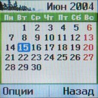 В меню Органайзер находится второй «вход» в адресную книгу, а также собственно календарь-органайзер. Последний имеет приятно выполненное графическое ежемесячное отображение и позволяет создавать до 20 напоминаний — каждое одноразовое, либо с ежедневной, еженедельной, ежемесячной или ежегодной периодичностью. Обычные пользователи чаще всего применяют такие функции для записи напоминаний о днях рождения, годовщинах и т. д. Для не очень активного пользователя количество записей еще приемлемо, но в общем случае недостаточно.