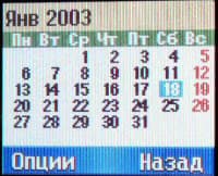 В меню Органайзер находится второй «вход» в адресную книгу, а также собственно календарь-органайзер. Последний имеет приятно выполненное графическое ежемесячное отображение и позволяет создавать до 20 напоминаний — каждое одноразовое, либо с ежедневной, еженедельной, ежемесячной или ежегодной периодичностью. Обычные пользователи чаще всего применяют такие функции для записи напоминаний о днях рождения, годовщинах и т.д. Для не очень активного пользователя количество записей еще приемлемо, но в общем случае недостаточно.