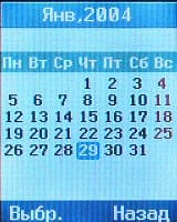 Меню Органайзер открывает доступ к календарю-органайзеру, текстовым заметкам и адресной книге. Возможности календаря-органайзера очень просты, он позволяет только добавлять напоминания без определения их типа, впрочем, напоминания могут повторяться с периодичностью от одного дня до года.