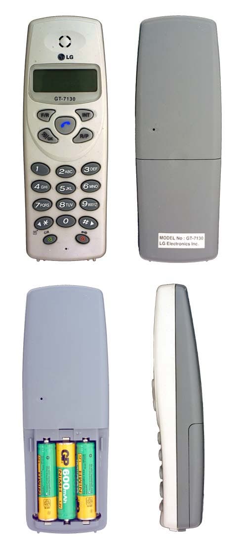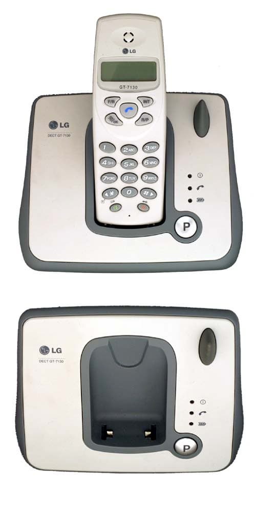 DECT-аппараты от компании LG образуют довольно внушительное семейство, одна из его представительниц — модель GT-7130. Базовая станция и трубка аппарата выполнены в серых тонах: светло-серые оттенки, перемежаясь с темно-серыми, создают интересный и приятный для глаз контраст. Базовая станция, являющаяся по совместительству зарядным устройством, предназначена для установки на ровной поверхности, например на столе. Размеры базовой станции невелики — 144×120×79 мм, вес — 220 грамм. Габариты трубки — 135×47×26 мм при весе 110 грамм. В батарейном отсеке находятся три никель-металл-гидридных аккумулятора (тип ААА) емкостью 600 мА·ч. Если верить инструкции, полностью заряженные аккумуляторы обеспечивают до 200 часов работы в режиме ожидания и до 15 часов — в режиме разговора. Как показала практика, если пользоваться телефоном около полутора часов в день, заряда батареи хватит на 4-5 суток. В инструкции сказано, что полная зарядка аппарата занимает примерно 12 часов, однако проверить это утверждение невозможно, поскольку индикатор заряда аккумулятора появляется на дисплее, только когда телефон разряжен (за полчаса до выключения). Индикатор на базовой станции показывает только то, что батареи заряжаются (по окончании процесса он не отключается).