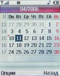 Пункт Органайзер содержит команды доступа к календарю с напоминаниями и блокноту для текстовых заметок. Календарь обладает достаточно гибким инструментарием для программирования событий (так, можно задавать продолжительность события, достаточно интересную ввиду появившегося режима просмотра распорядка дня). Оформление и интерфейс органайзера очень удобны и побуждают пользователя применять этот инструмент. Заметки также делаются без затруднений, но на них расходуются ячейки памяти органайзера. Начиная с модели F3000 в телефонах LG убрали команду для просмотра количества возможных напоминаний, но есть большое подозрение, что их осталось опять-таки 20.