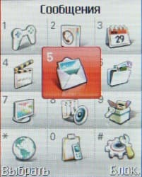 Главное меню телефона двухмерное, пиктографическое, оно состоит из 12 пунктов с построчно-циклической прокруткой в горизонтальном направлении и кольцевой циклической — в вертикальном. Как обычно, пиктограмма выделенного пункта увеличивается и включается ее анимация. Вложенные меню — текстовые, одномерные. На всех уровнях пункты пронумерованы для быстрого доступа; в главном меню для этой цели используются все клавиши, включая * и #.