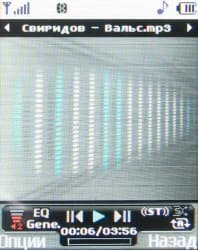 MP3-плеер в KG320 полностью идентичен таковому в P7200, это касается и графического интерфейса. Программа совместима с файлами *.mp3 с кодированием MP3, MP3Pro, в обоих случаях — с постоянным (64-320 kbps) и переменным битрейтом.