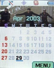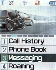Меню в Samsung SPH-N270 вызывается нажатием соответствующей клавиши. Оно имеет одномерную структуру (состоит из последовательности пунктов, которые можно перебирать вверх или вниз), для навигации, как нетрудно догадаться, используется джойстик. Меню весьма привлекательно оформлено — над областью с пунктами находится узкое окно (пропорции которого примерно такие, как у киноэкрана), на котором транслируются анимированные заставки. Разумеется, наиболее привлекательно и соответственно стилю смотрятся видеофрагменты из новой «Матрицы», есть также вариант оформления меню, в котором используются фрагменты из мультфильма «Animatrix». Качество экрана позволяет воспроизводить ролики с естественной цветопередачей и практически без смазывания. Дизайн меню весьма привлекательный также благодаря удачному подбору цветовой гаммы и шрифтов.