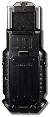 На нижней поверхности корпуса располагается разъем для подключения зарядного устройства и дата-кабеля — традиционной для Samsung формы, но, тем не менее, несовместимого ни механически, ни электрически с аксессуарами для GSM-моделей.
