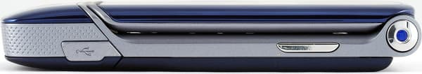 На правой стороне телефона располагается большая кнопка для активизации голосового набора, а внизу — mini-USB, для синхронизации с компьютером и зарядки. Заглушка этого порта сделана достаточно красиво и вроде бы даже надежно, правда иногда несколько мешается при подключении зарядки или кабеля — приходится искать удобное положение для нее.