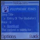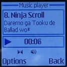 Музыку можно слушать через наушники. Гарнитура, идущая в комплекте полностью аналогична той, что поставляется вместе с Nokia 7210/6610/5100/6800. Если же гарнитуру отключить, либо активировать соответствующий пункт в меню, то звук будет идти через встроенный динамик.