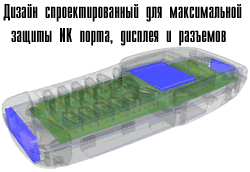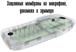 Данная модель является первым серийным телефоном со встроенной защитой от воды, пыли и падений. Защита от воды, правда, отнюдь не означает, что с этим телефоном можно заниматься подводным плаванием, — его можно всего лишь мочить, но как!!! Если телефон кинуть в ведро с водой и через минуту вытащить его оттуда, с аппаратом ничего не произойдет (гарантия — 100%). Для просмотра особенностей конструкции щелкайте мышкой на надписи.
