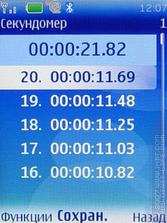 Секундомер позволяет создавать до 20 промежуточных значений.
