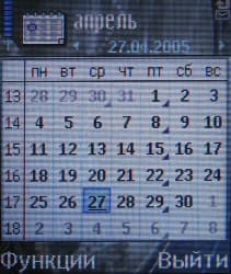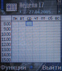Календарь можно просматривать в ежемесячном и еженедельном режимах, он позволяет программировать события трех видов (встреча, памятка, годовщина) в зависимости от типа изменяется количество, и перечень информационных полей. Однако, в общем, их не очень много, возможности Series 60 в этом отношении намного проще, чем у коммуникаторов, и даже у MS Smartphone.