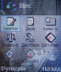 Офис. Здесь расположены деловые приложения. Кроме апплетов, входящих в состав ОС (блокнота, списка задач, калькулятора, конвертера величин и диктофона) в смартфоне предустановлен пакет Quick Office, состоящий из текстового редактора, электронных таблиц и программы для презентаций. Все три утилиты совместимы с форматами данных соответствующих приложений MS Office.