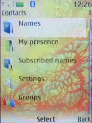 Вид главного меню также приближен к таковому в Series 60, в частности, применена та же цветовая гамма и дизайн пиктограмм и декоративных элементов, что и в смартфонах N-серии. Теперь можно выбрать один из четырех способов отображения меню — Grid (матрица пиктограмм, как в старой Series 40), Grid with Labels (матрица с подписями) и List (вертикальный список пиктограмм с подписями — оба эти режима оформлены в точности как в новой Series 60), а также Tab. Последний вариант — это новая двухмерная структура, в которой одновременно выводится на экран лента пиктограмм главного меню (горизонтальная) и список пунктов вложенного, прокручиваемый вертикальным направлением джойстика. Последняя создана явно под влиянием Samsung, так как именно корейцы прорабатывали подобную схему управления, она существует в сувонской платформе в разных вариантах вот уже пару лет.