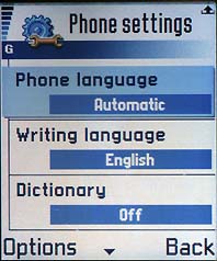 Перейдем к рассмотрению верхней части смартфона. В 7650 применяется TFT-матрица (несенсорная), отображающая до 4096 цветов и имеющая физический размер в 35×41 мм при разрешении 176×208 точек. Фотографии, сделанные при помощи встроенной камеры, смотрятся на дисплее очень неплохо, то же самое можно сказать о меню и программах. При ярком солнечном свете изображение становится менее четким, но информация на экране читается легко. Естественно, контрастность настраивается; предусмотрен также встроенный сенсор освещенности с двумя значениями подсветки (минимальная и максимальная), изменяющимися в зависимости от окружающих условий. Мне показалось, что на улице всегда включается режим энергосбережения, а в помещениях уровень подсветки всегда максимальный. Сенсор (небольшой белый кружок) находится в верхней части корпуса справа. В режиме ожидания подсветка экрана не работает, но можно установить, например, часы и дату.