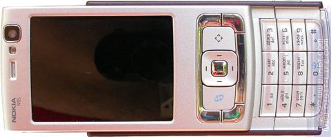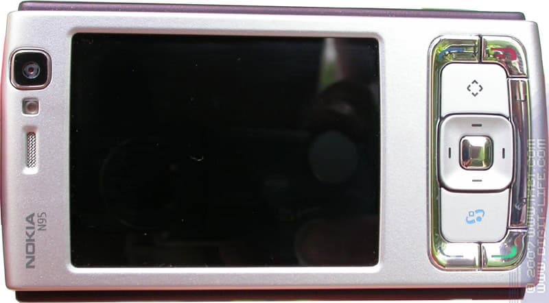 Экран занимает значительную площадь, его диагональ 2,6 дюйма. Приметой изделий Nokia серии N становится отсутствие защитного стекла на средствах вывода. Это оживляет тона, коих дисплей отображает 16 млн., и порождает дискуссию на тему, насколько такое конструктивное решение оправданно и необходимо. Я бы предпочел видеть цвета поскучнее, получая взамен большую уверенность в сохранности экрана. С другой стороны, подумываю о покупке коммуникатора на Windows Mobile for Pocket PC, у которого дисплей защищён ничуть не лучше. Конечно, риск в данном случае оправдывается наличием чувствительности к нажатиям у экрана. И всё же его защищённость стоит далеко не на первом месте в списке моих требований к телефону. Но есть люди, которые будут вынуждены отказаться от Nokia N95 именно из-за дисплея. У него чудесная цветопередача, он пригоден к использованию и в солнечный день, однако слишком уязвим.