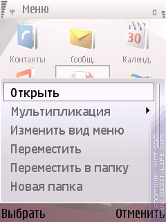Это стандартный Feature Pack 1 от Nokia S60 3rd Edition. Впрочем, ещё вопрос, что считать стандартом. Например, в аппаратах Nokia 6290, N76 реестр приложений можно организовать в виде «Horseshoe» и «V-wheel», а кнопка «Мультимедиа» выводит в меню быстрого запуска 4 программ (показано ниже).