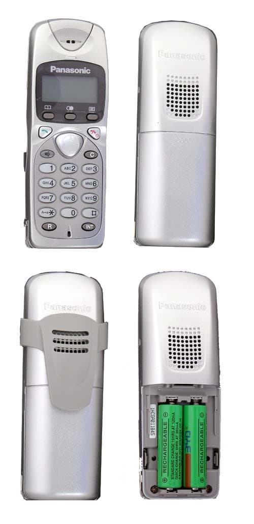 На задней поверхности телефона расположено отверстие динамика, выполняющего двоякую функцию. С одной стороны, он выступает в качестве динамика для входящего звонка, с другой — применяется при громкой связи. При использовании клипсы динамик частично перекрывается, но на качестве его работы это не сказывается. Ниже находится аккумуляторный отсек с двумя никель-металл-гидридными аккумуляторами емкостью 1200 мА·ч (тип АА). Полное время заряда составляет около 10-12 часов, и его хватает на 5-6 дней работы при часе-полутора разговоров в день.