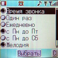 Будильник позволяет программировать три независимых сигнала, каждый из которых может срабатывать однократно, ежедневно, с понедельника по пятницу или по субботу. Такого набора более чем достаточно для обычного пользователя.