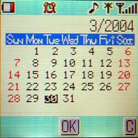 Меню Ежедневник открывает доступ к календарю-органайзеру. Здесь также кроется неудобство: по умолчанию всегда отображается список запрограммированных напоминаний, даже если ничего не задано, все равно показывается меню из одного пункта [Новое событие], только выбрав его, можно увидеть привычный календарик в виде помесячной таблицы.