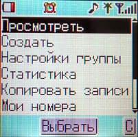Пункт Телефонная книга дает доступ к полному списку опций памяти контактов.