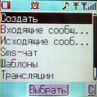 Пункт Сообщения позволяет работать с SMS, EMS и MMS — все три сервиса имеют поддержку в G60. Структура папок предельно проста, для всех видов сообщений предусмотрены общие папки Входящие и Исходящие. Поддерживаются многостраничные MMS. Есть и такая функция, как SMS-чат.