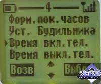 Вместо заставки можно настроить отображение даты и времени. Если вынуть аккумулятор, настройки даты и времени обнуляются, что неудобно. В телефоне есть будильник, который может быть выставлен на однократное или ежедневное срабатывание. Будильник работает не только при включенном телефоне. Стоит также отметить возможность настройки включения или выключения телефона в определенное время.
