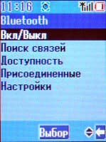 Для вызова меню и подтверждения опции используется клавиша ОК, встроенная в джойстик. Возврат на предыдущий уровень осуществляется при помощи правой софт-клавиши. Выход в режим ожидания, как обычно, происходит по нажатию на клавишу отбоя.