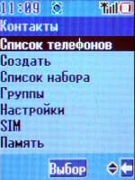 Первым пунктом главного меню (в левом верхнем углу) следует Настройка, здесь собраны опции управления телефоном, а также услугами сети, в том числе и переадресацией. О том, что данную опцию следует выносить непосредственно в главное меню или в пункт, включающий установки связи, мы говорили неоднократно, в X70 этого нет. Следующим пунктом меню идет адресная книга (Контакты), о ней мы уже упоминали.