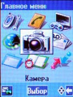 Расположение пунктов в главном меню X70 не совсем обычное, но помещение в центр опции Камера, притом, что этот пункт является стартовым, часто встречается среди камерафонов. Запустить апплет, выполняющий функции фотосъемки, можно и при помощи правой софт-клавиши.