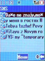 Меню Сообщения открывает доступ к SMS, MMS и e-mail. Графическое вложенное меню позволяет создавать новое сообщение, просматривать папки входящих и исходящих посланий, сообщений голосовой почты и Cell Broadcast. Отдельными пунктами вынесены электронная почта, SMS-чат, настройки сообщений, а также альтернативный доступ к файловому броузеру (здесь это уместно, так как файлы из памяти телефона часто используются для пересылки по MMS). В X70 поддерживается ввод кириллицы, есть словарь T9 для русского языка. Есть также возможность создания многостраничных MMS, впрочем, она уже стандартна для большинства новых телефонов. В общем, возможности работы с сообщениями вполне типичны, в этом телефоне доступ к данным функциям прост и удобен.
